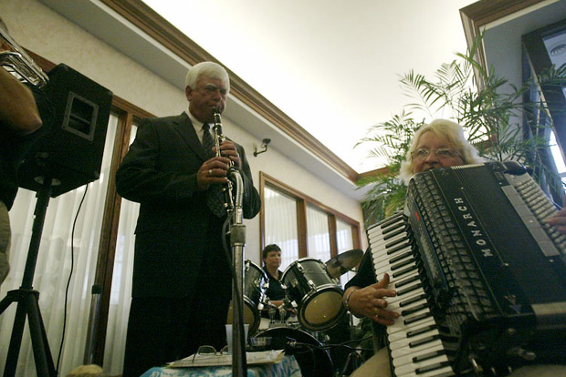 JDuring the Bay-Hermann Berger Bank open house, Berkemeyer plays his clarinet with the Loehnig German Band. The band includes Marilyn on the accordion. Berkemeyer also plays the saxophone, and the flute.